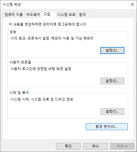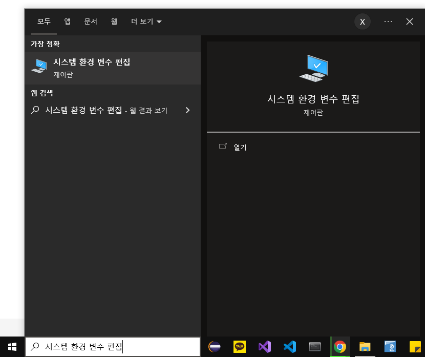 4. 윈도우에서 시스템 환경 변수 편집을 검색 후 클릭합니다.