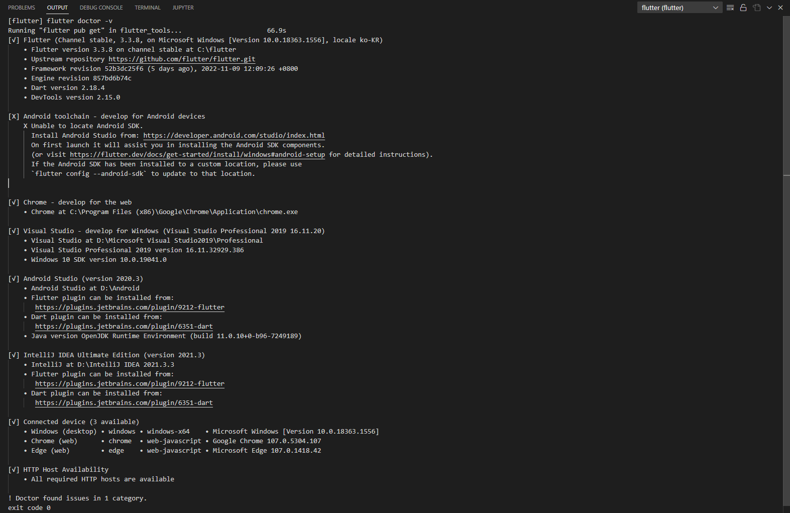 [Flutter] 2. 플러터와 VS Code 연동하기(Flutter Doctor Check) 본문