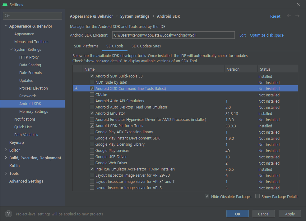 [Flutter] 3. 플러터와 Android Studio 연동하기(SDK Manager Command-line tool 설치하기) 본문