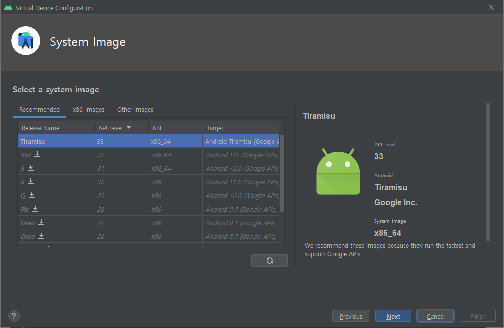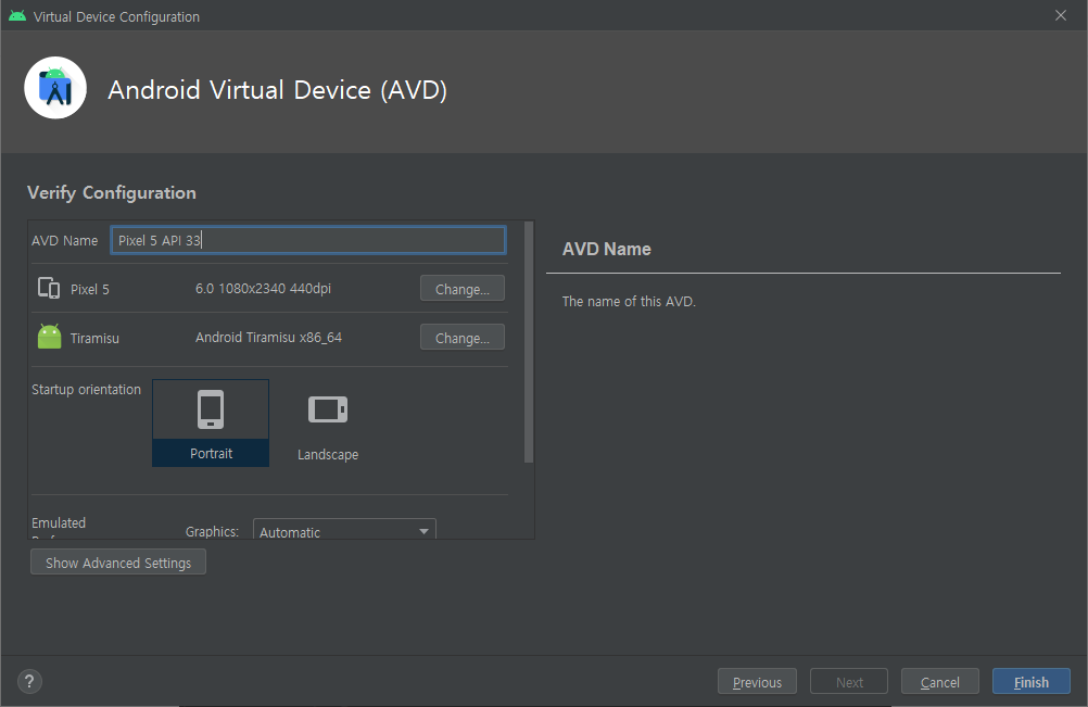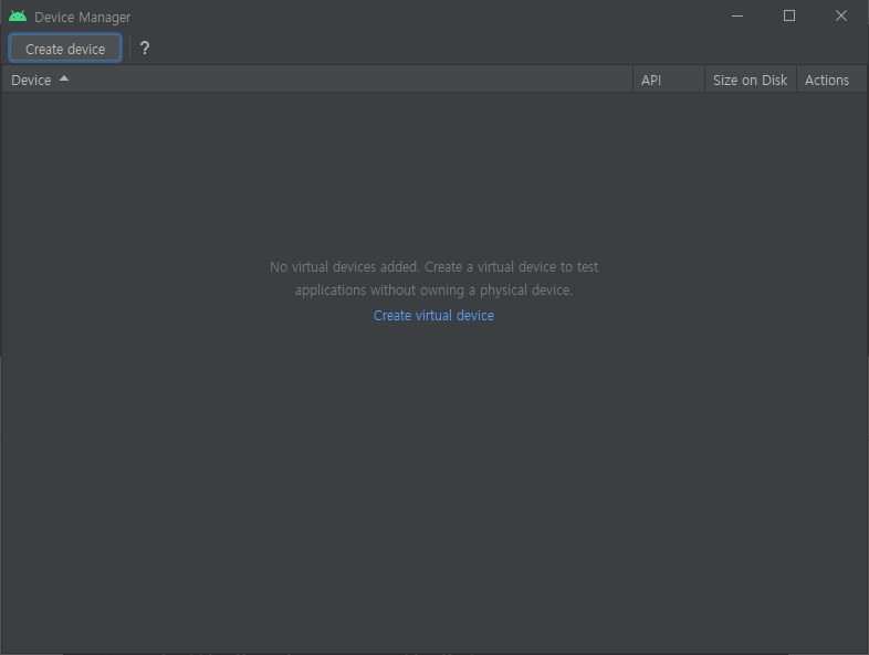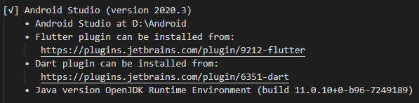 위 과정을 진행하시면 Flutter Doctor Check 중 Android Studio 설치 및 Virtual Device 등록과 Android toolchain 옵션 세팅을 완료하였습니다.