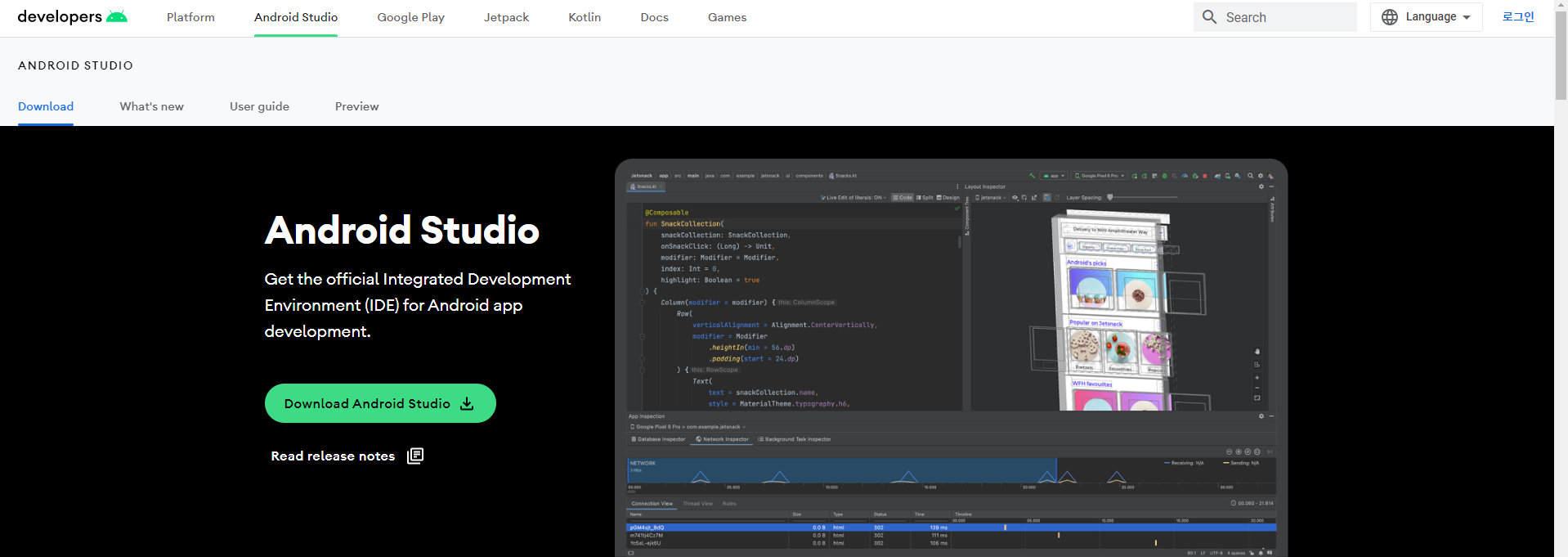 1. Android Studio 사이트 접속 및 Download Android Studio 버튼 클릭