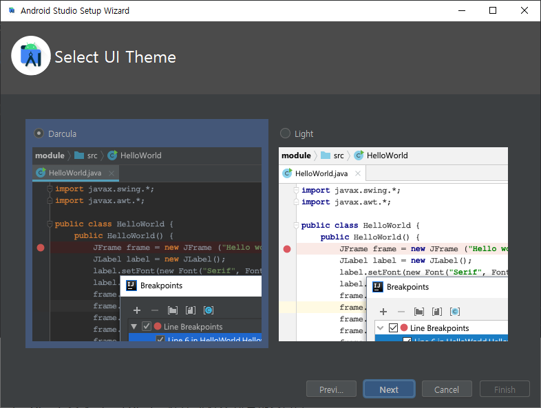 12. 테마를 설정하는 화면입니다. 취향에 따라 선택하신 후 Next 버튼 클릭