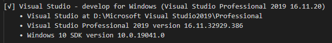 Flutter 개발 환경 설정 과정 중 Doctor Check 를 통해 Visual Studio 및 C++ 워크로드 추가 과정까지 마쳤습니다.