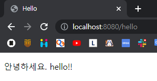 3-8. 빌드 후 localhost:8080/hello 접속하여 결과 확인