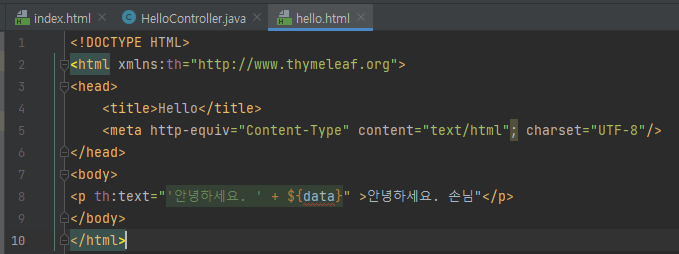 - return "hello" 는 뒤편에 생성되는 hello.html 에 값을 반환하라는 의미이다.
