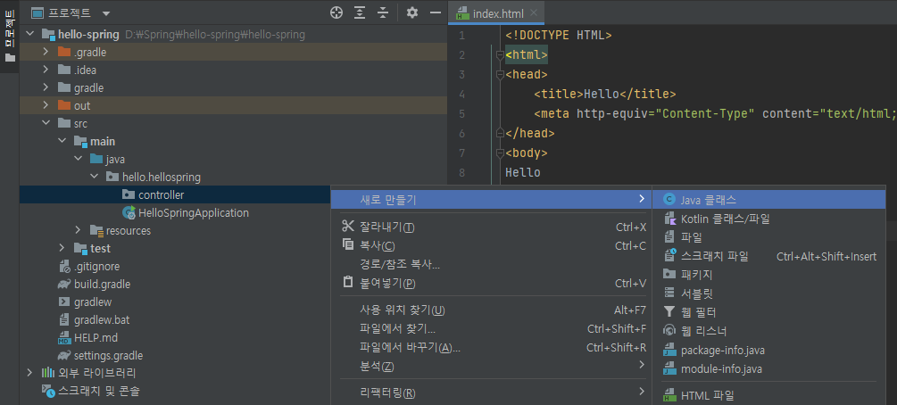 3-3. controller > 새로 만들기 > Java 클래스