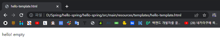 - thymeleaf 템플릿의 장점 : html을 그대로 쓰고 파일을 서버 없이 열어봐도 정적 컨텐츠를 확인할 수 있다.