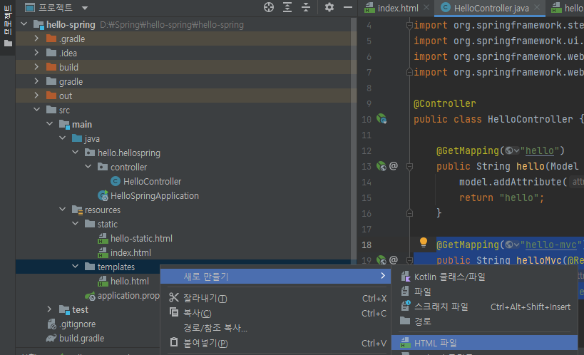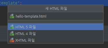 4. 프로젝트 > src > resources > templates > 새로 만들기 > HTML 파일