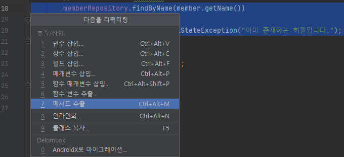 6-3. 메서드 이름을 validateDuplicateMember 로 설정한다.