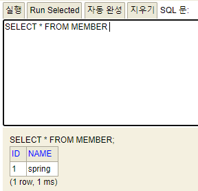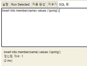 insert into member(name) values('spring');