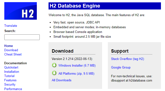 2. H2 데이터베이스 홈페이지로 이동한다.
