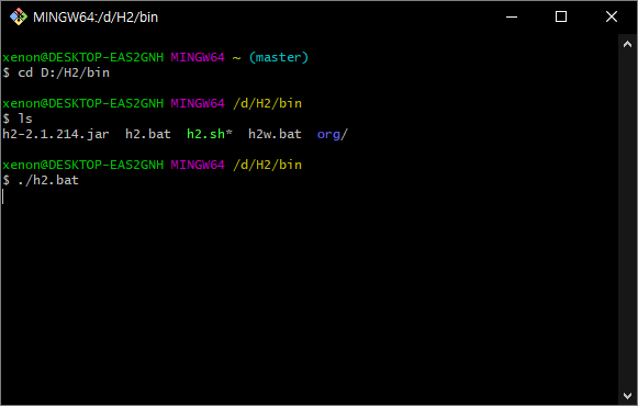 5. 설치를 완료했다면 리눅스에 접속하여 H2 실행파일을 실행시킨다.