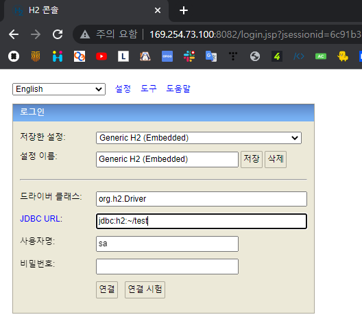 - url 은 H2 콘솔의 JDBC URL 이다.