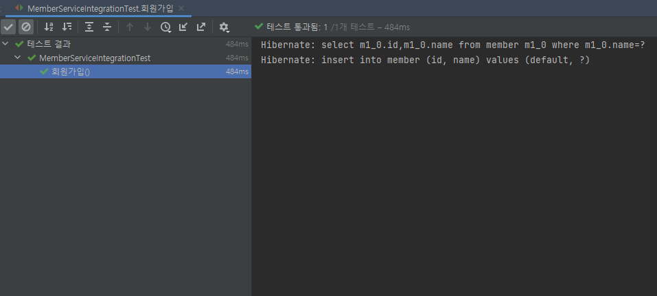 9. MemberServiceIntegrationTest 를 테스트 해보자.