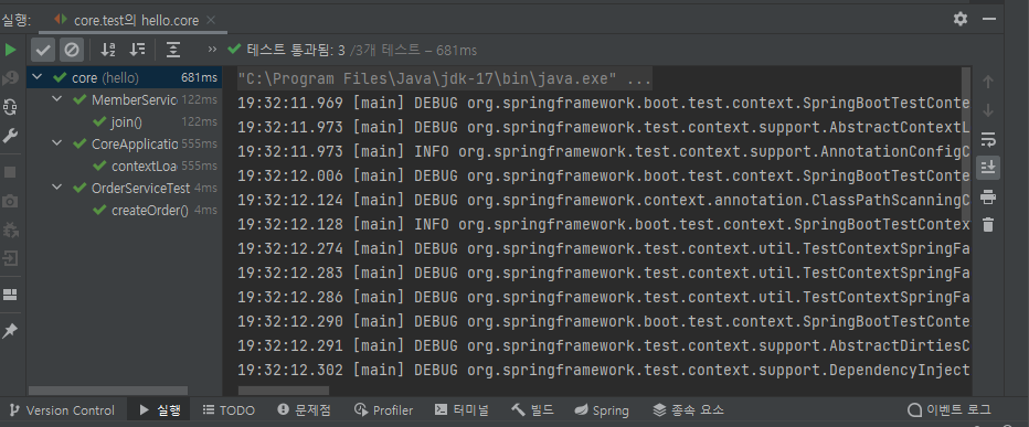 8. java > test > hello.core 빌드 하여 모든 테스트 빌드 해보기