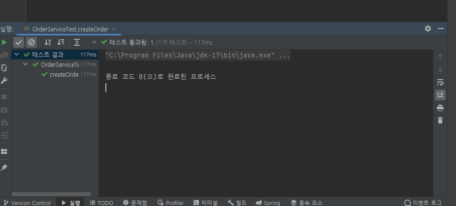 Order order = orderService.createOrder(memberId, "itemA", 10000);