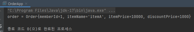 return new Order(memberId, itemName, itemPrice, discountPrice);