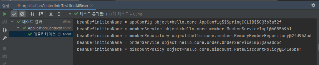1. 스프링 컨테이너에 실제 스프링 빈들이 잘 등록 되었는지 확인해보자.