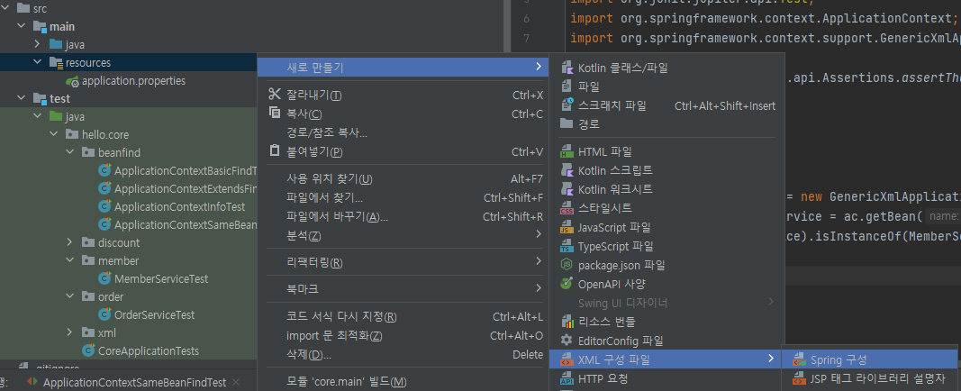 7. main > resources > 새로 만들기 > XML 구성 파일 > Spring 구성