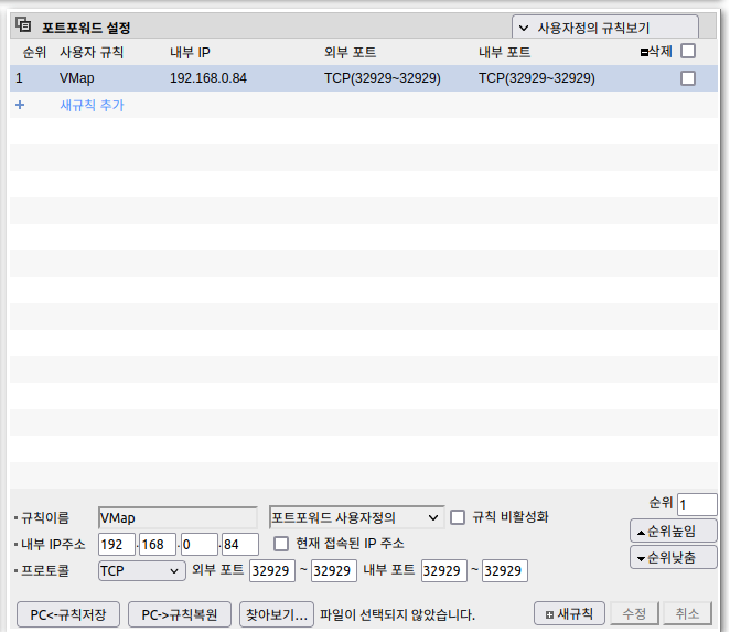 내부 포트(80~80)에서 내부 포트(32929~32929)로 수정하였다.