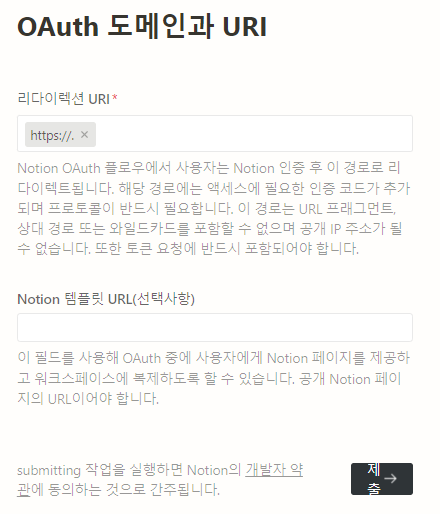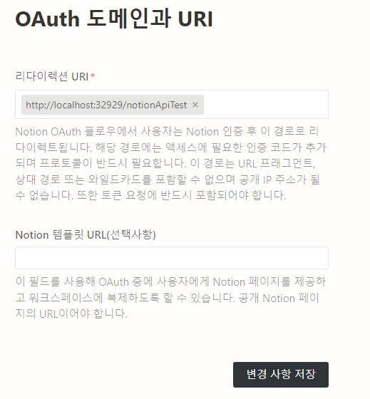 저는 로컬에서 테스트하기 때문에 localhost/notionApiTest 로 등록했습니다.