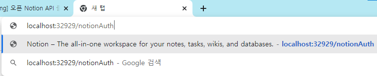 localhost:32929/notionApiTest?code=036ca5f5...