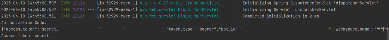 code와 access token 이 콘솔에 출력되도록 작성하였습니다.