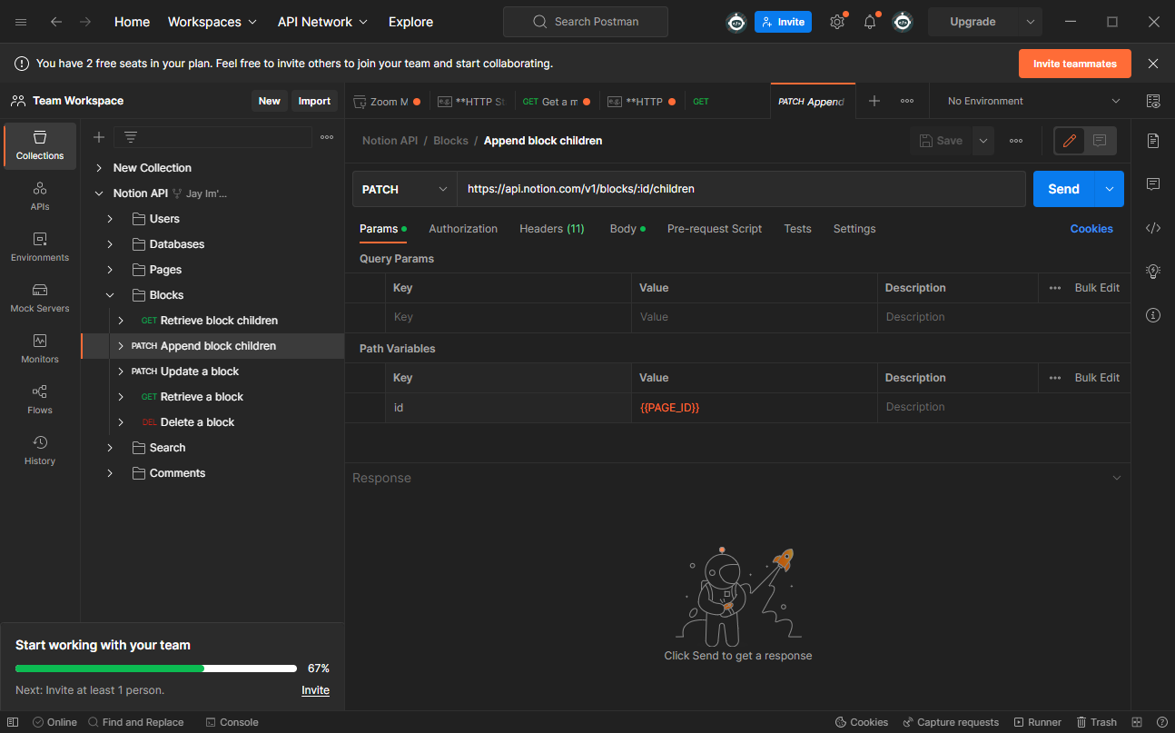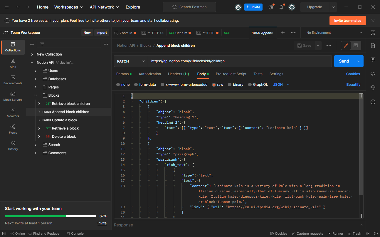 포스트맨에서도 확인할 수 있다. Append block children