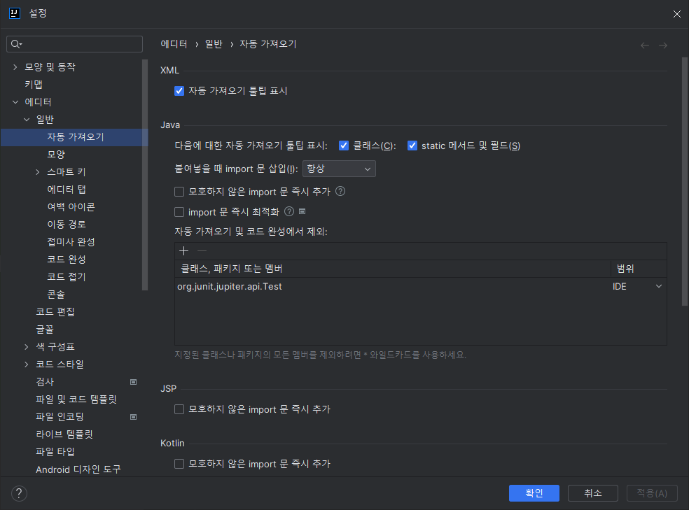 나도 평소처럼 스터디를 하다가 갑자기 잘 사용해오던 org.junit.jupiter.api.Test 가 자동완성 탭에서 사라졌다.