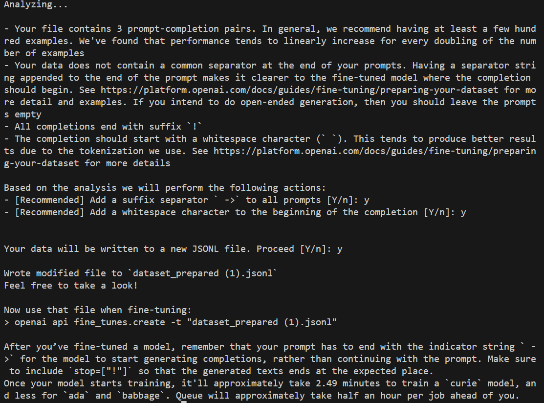 command = 'openai tools fine_tunes.prepare_data -f '