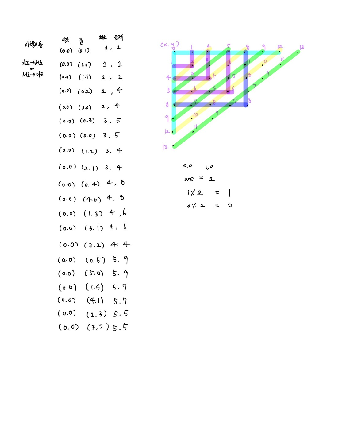 // 거리가 짝수일 때, x축 거리가 홀수면 하나 감소