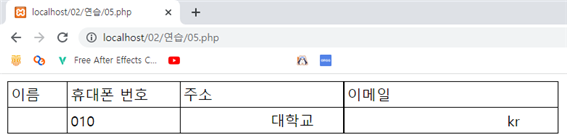연습문제 2-5. HTML의 <table> 태그를 이용하여 4번 문제의 출력 결과를 다음과 같이 나타내시오.