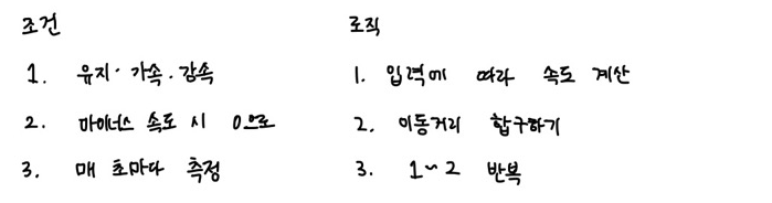 // 정지(0)가 아닌 경우 가속도 입력 및 속도 갱신