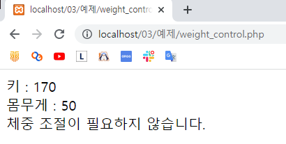 echo "체중 조절이 필요하지 않습니다.<br>";