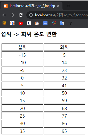 <h3>섭씨 -> 화씨 온도 변환</h3>