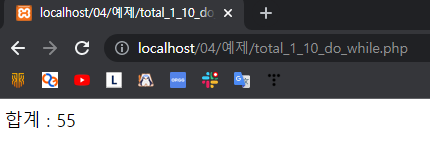 echo("1에서 10까지 정수의 합은 $sum 입니다.<br>");