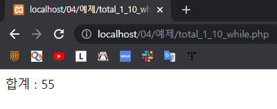 예제 4-16. while문으로 정수 1~10의 합계 구하기