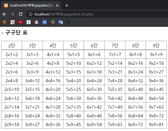 <h3>- 구구단 표</h3>