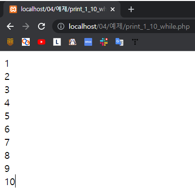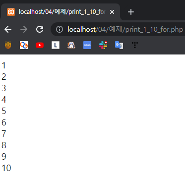 echo "$i<br>"; // $i를 화면에 출력하고 줄바꿈