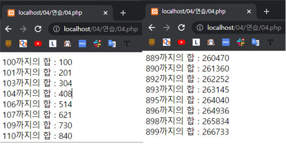 echo "{$num}까지의 합 : $sum<br>";