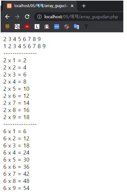 $c = $a[0] * $b[$i]; // $a[0] : 2단 구구단