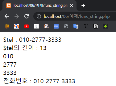 echo "전화번호 : $phone[0] $phone[1] $phone[2]<br>";