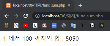 // sum($a, $b) 함수는 $a에서 $b까지의 합을 구한다.