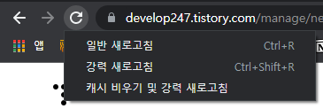 3. 캐시 비우기 및 강력 새로고침을 누른다.