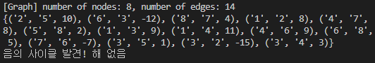 벨만-포드 알고리즘에서는 음의 사이클일 경우 안내 메세지를 출력하도록 예외처리하였습니다.
