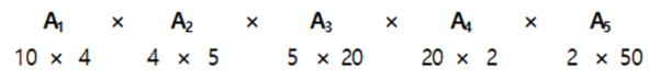 따라서, 행렬을 연쇄적으로 곱할 때 기본적인 곱셈의 횟수가 가장 적게 되는 최적의 순서를 결정해야 합니다.
