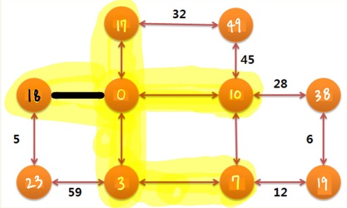 extract_min 함수를 통해 반환된 최소 가중치 노드는 3이고, d[3] = d[4] + 18 = 18 입니다.