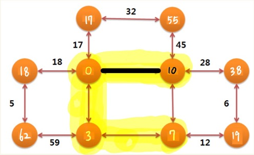 djikstra 알고리즘을 통해 완성된 최단 경로입니다.