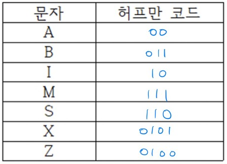 허프만 코딩 문제 알고리즘