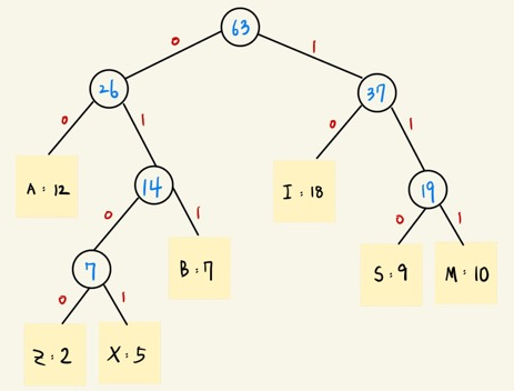 즉, 허프만 코딩 문제는 주어진 문자 집합에 대해 최적 코드에 해당하는 이진 트리를 구축하여 최적 이진 문자 코드(Huffman code)를 만들어 보는 문제입니다.